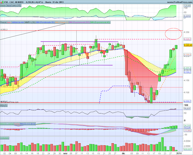 En el gráfico de mi broker, vemos como la zona a superar máxima, es sobre los 4360(línea roja)